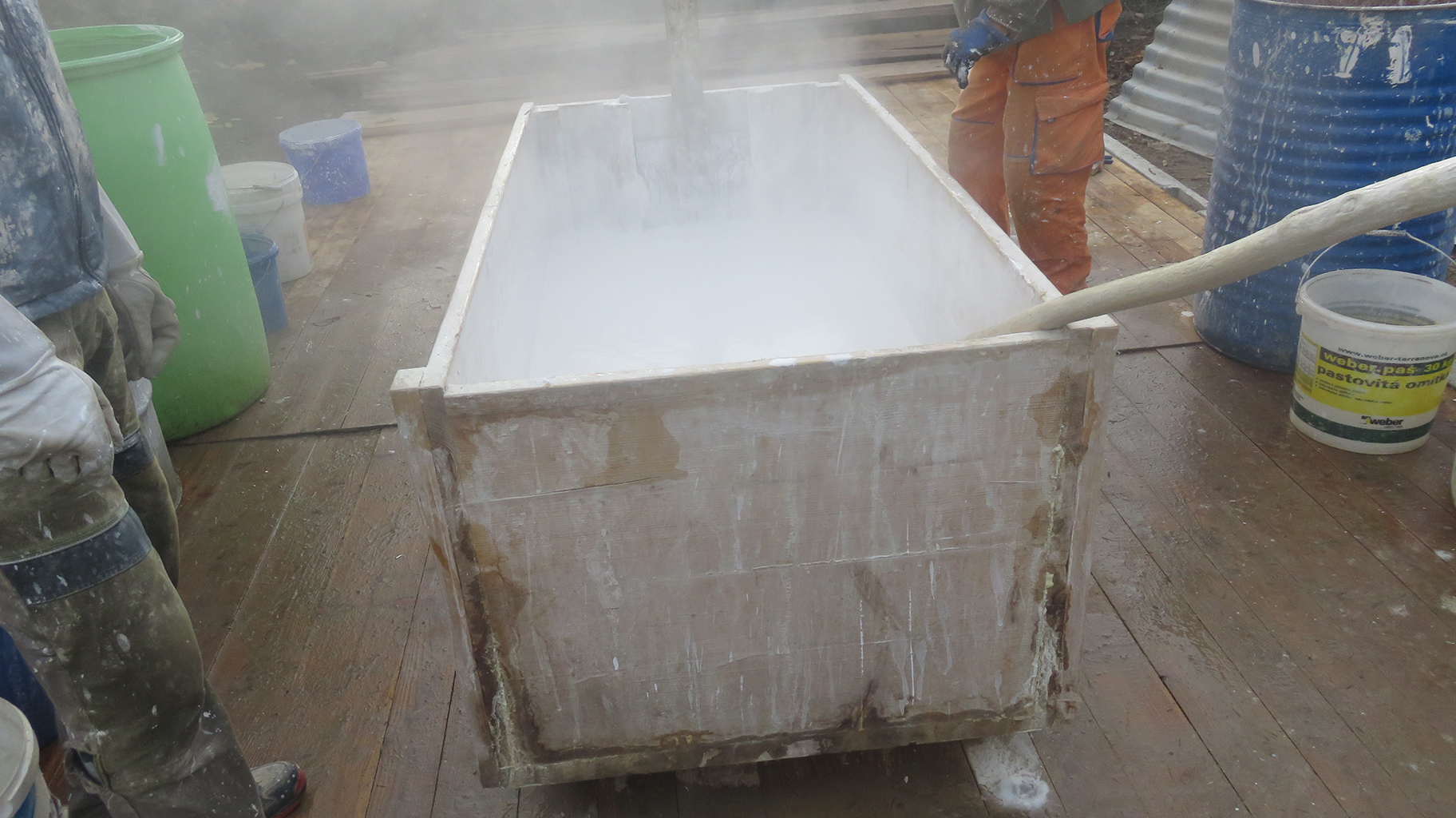 Hašení je prováděno za mokra z kusového vápna. Věnujeme značnou péči promíchání.